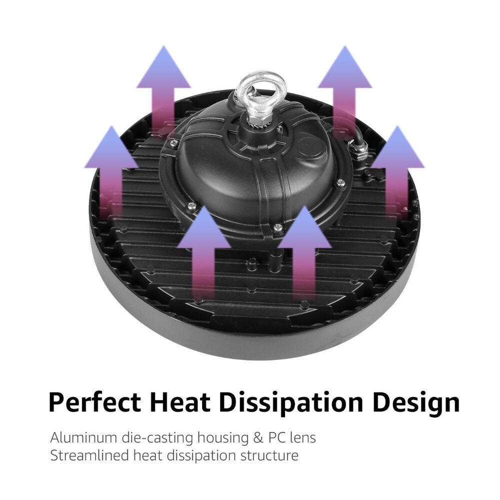 CE- & TÜV-zertifiziert: Die 100W UFO-Hallenleuchten von Lepro sind CE- und TÜV-zertifiziert. Mit einem robusten Aluminiumgehäuse und einer PC-Linse haben sie eine getestete Lebensdauer von 50.000 Stunden.