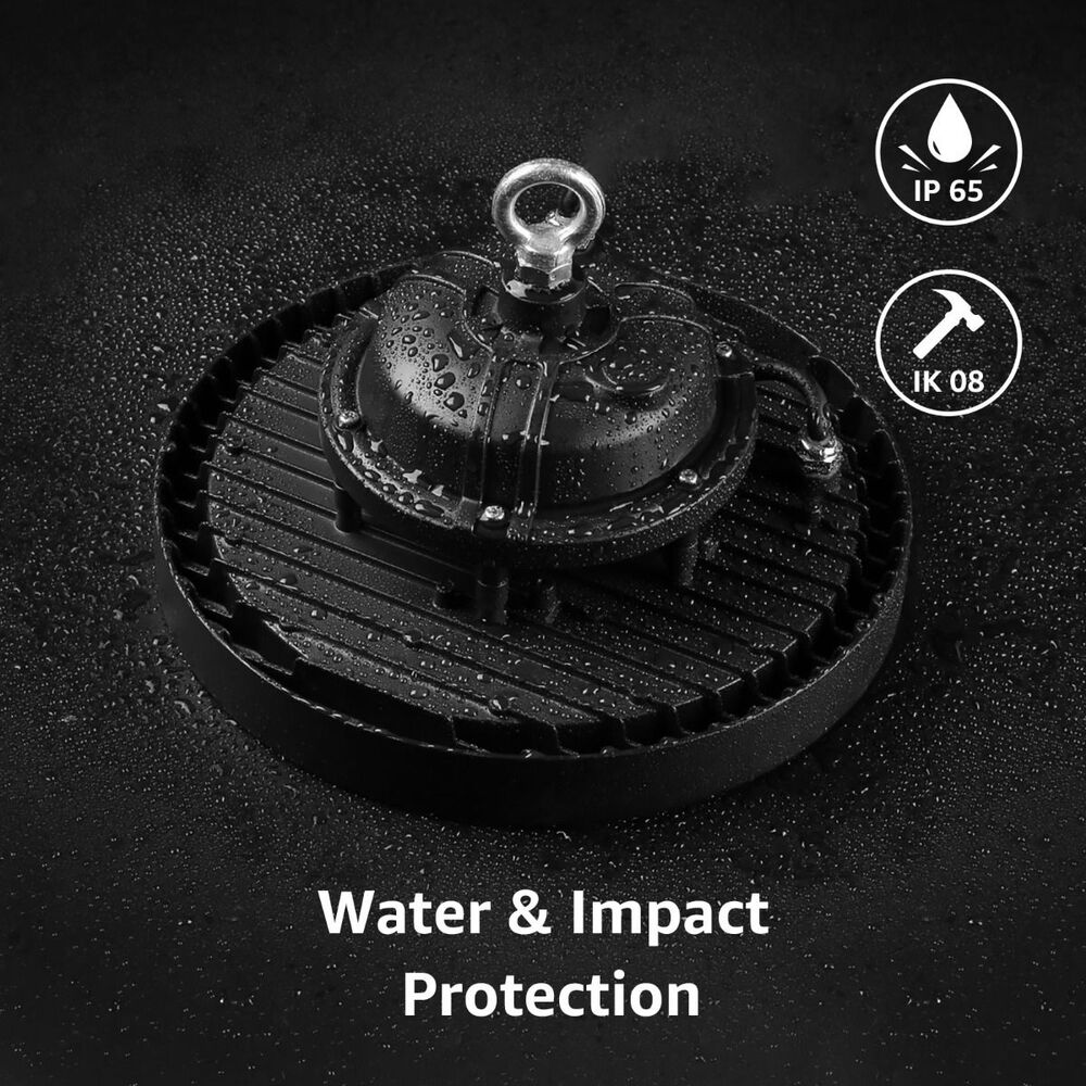 Die Lepro 100W UFO-Hochregallampe ist nach IP65 wasserdicht und damit für nasse oder staubige Umgebungen geeignet.