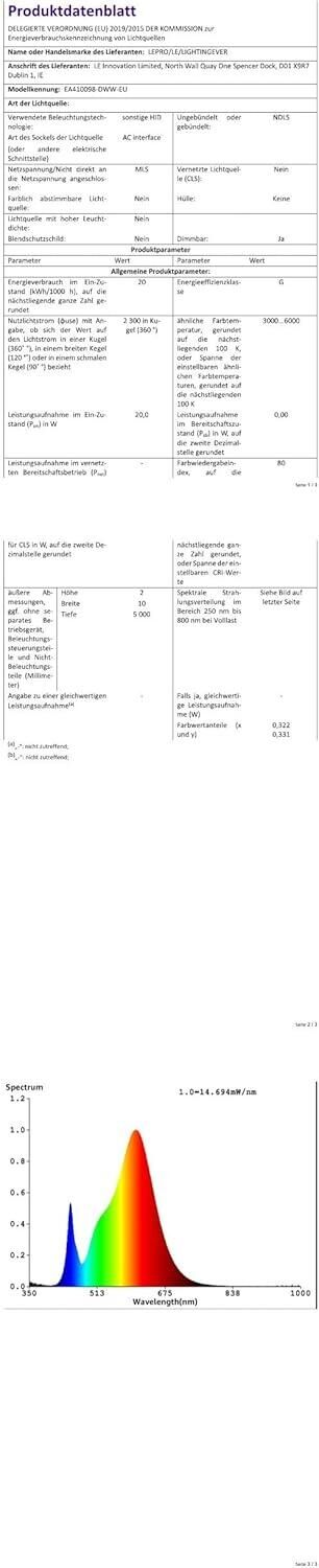 | Frequenz (Hz) | 50 | CRI | >70 |