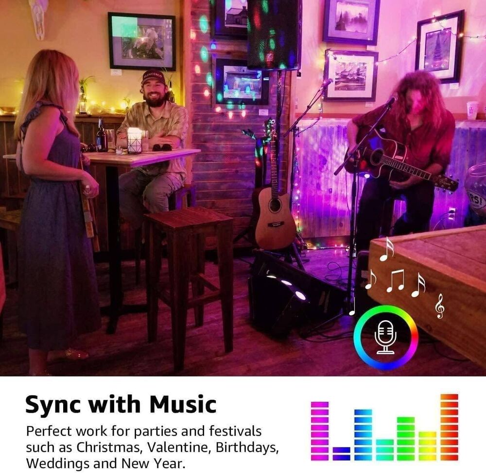 Es kann der Musik oder Aufnahme folgen und die Farbe automatisch entsprechend dem Umgebungsklang ändern. Diese WiFi LED Streifen sind ideal für Partys und Festivals wie Geburtstage, Valentinstag, Weihnachten usw., um eine romantische Atmosphäre zu schaffen.