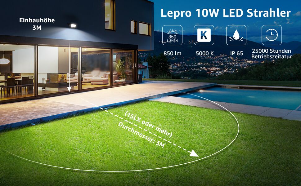 Lepro LED Strahler Außen 10W, LED Fluter 850LM, Superhell LED Außenstrahler, IP65 Wasserdicht LED Fluter, 5000K Kaltweiß Scheinwerfer Flutlicht, Außenlampe für Garten, Innenhöfe, Garage, Hotel, Sportplatz [Energieklasse F]