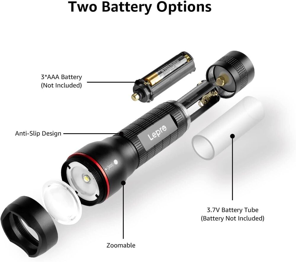 - Flexibler Batteriebetrieb: Die kleine Taschenlampe kann sowohl mit 3 AAA-Batterien als auch mit einer 3.7V 18650-Batterie betrieben werden (nicht im Lieferumfang enthalten). Sie haben immer eine Auswahl an verfügbaren Batterietypen.