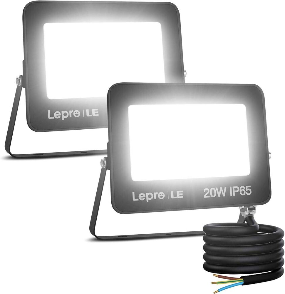 Lepro LED Strahler Außen 2 Stücke, 20W LED Fluter, Superhell 1700LM Außenstrahler 5000K Kaltweiß IP65 Wasserfest Aussenstrahler, Aussenlampe für Hinterhof, Auffahrt, Türen, Garage, Flur, Garten