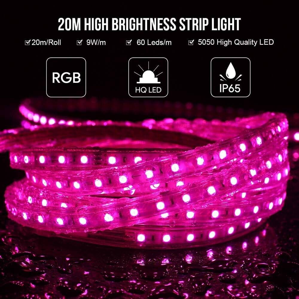LE 20M LED Stripes, 5050 SMD LEDs, 220V-240V LED Streifen, Superhelle mehrfarbig RGB, IP65 wasserdichte außere dekorative Lichterketten
