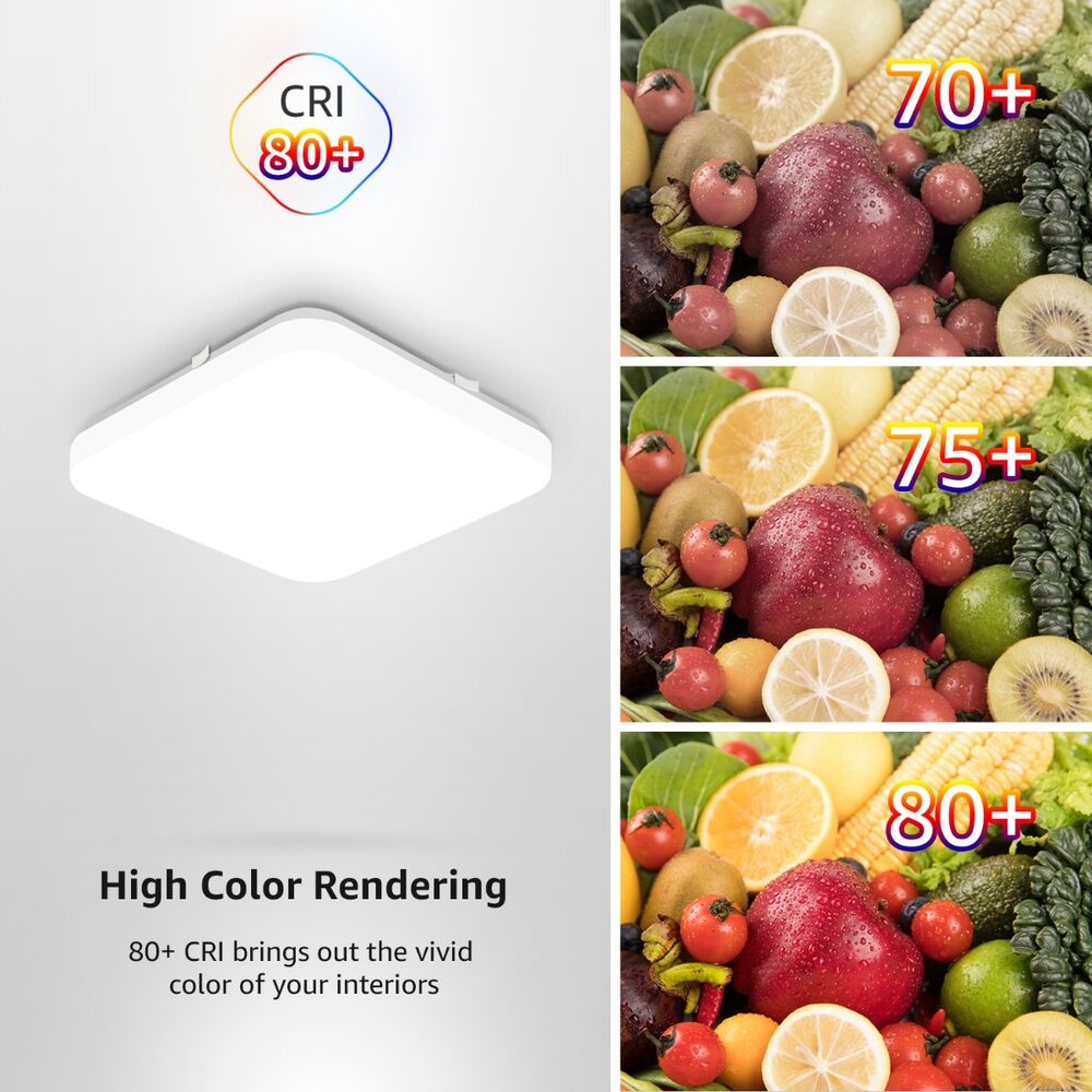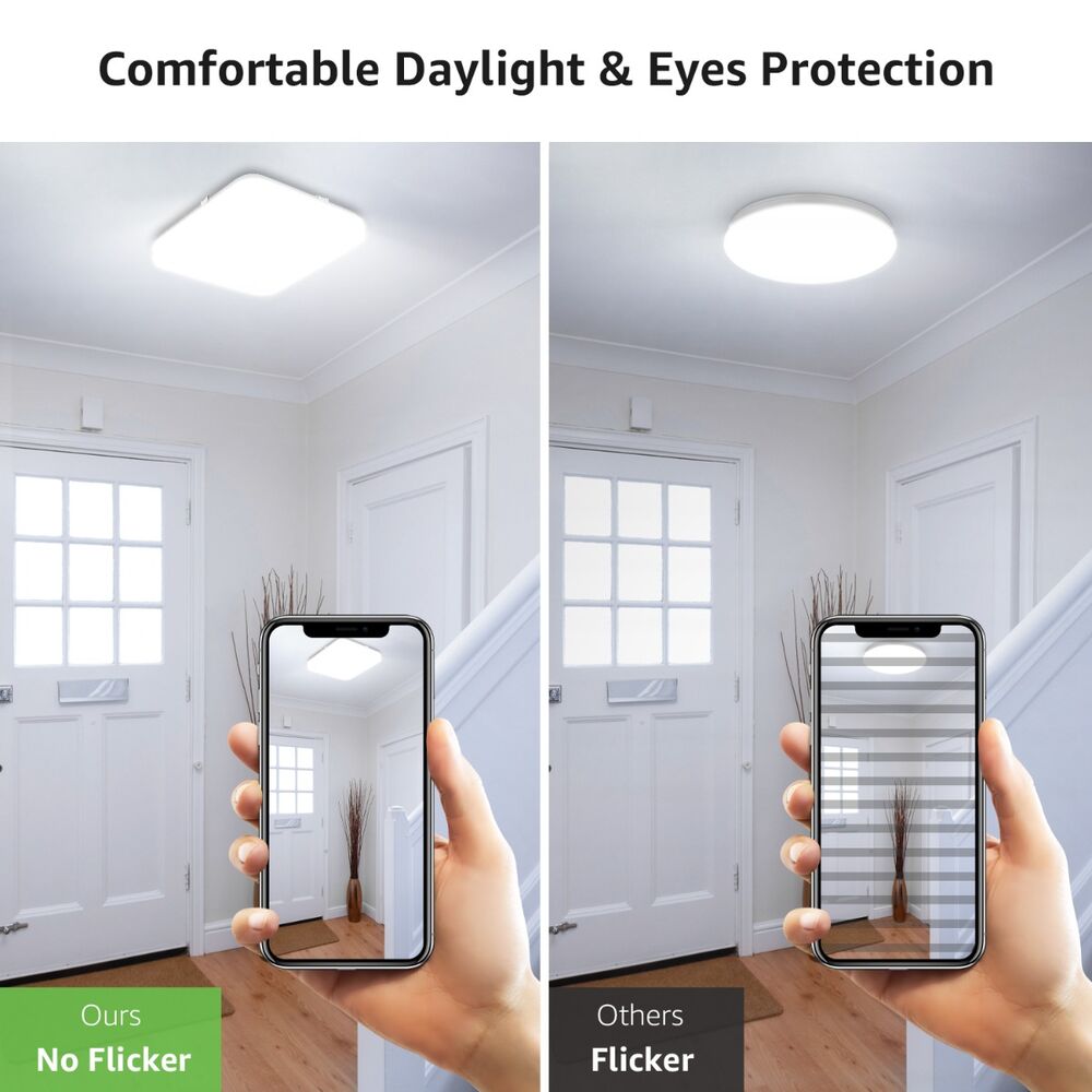 - 【Sicherheitsorientiertes Gehäuse】 Das Kunststoffgehäuse aus erstklassigem PC der Klasse A bietet bessere Lichtdurchlässigkeit und Festigkeit verglichen mit anderen Deckenlampen und ist stoßfest, vibrationsfest als auch isoliert, um Elektroschocks und Brandschäden zu verhindern.