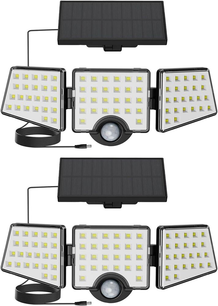 Lepro Solarlampen für Außen mit Bewegungsmelder, 1200LM IP65 Solarleuchte Aussen mit Separatem Solarmodul & 3 Verstellbarer Kopf, Solar Außenleuchte Wandleuchte 270 ° Winkel Außenlampe, 2 Pack