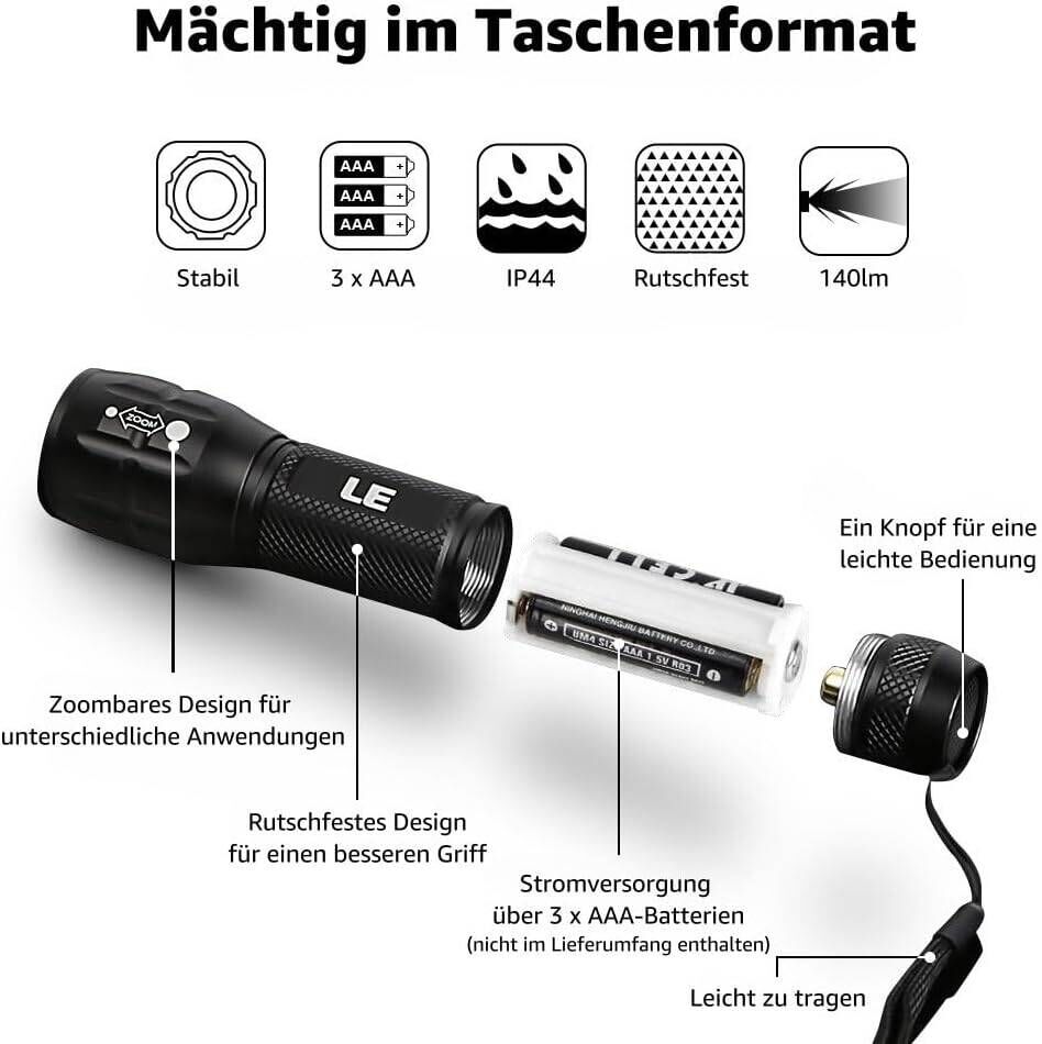 - Diese LE LED Taschenlampe beträgt 140 Lumen, was ungefähr 400% mehr als bei einer gleicher Größe LED Taschenlampe ist.