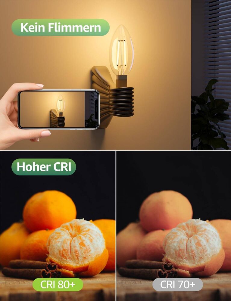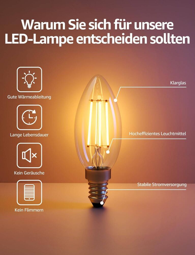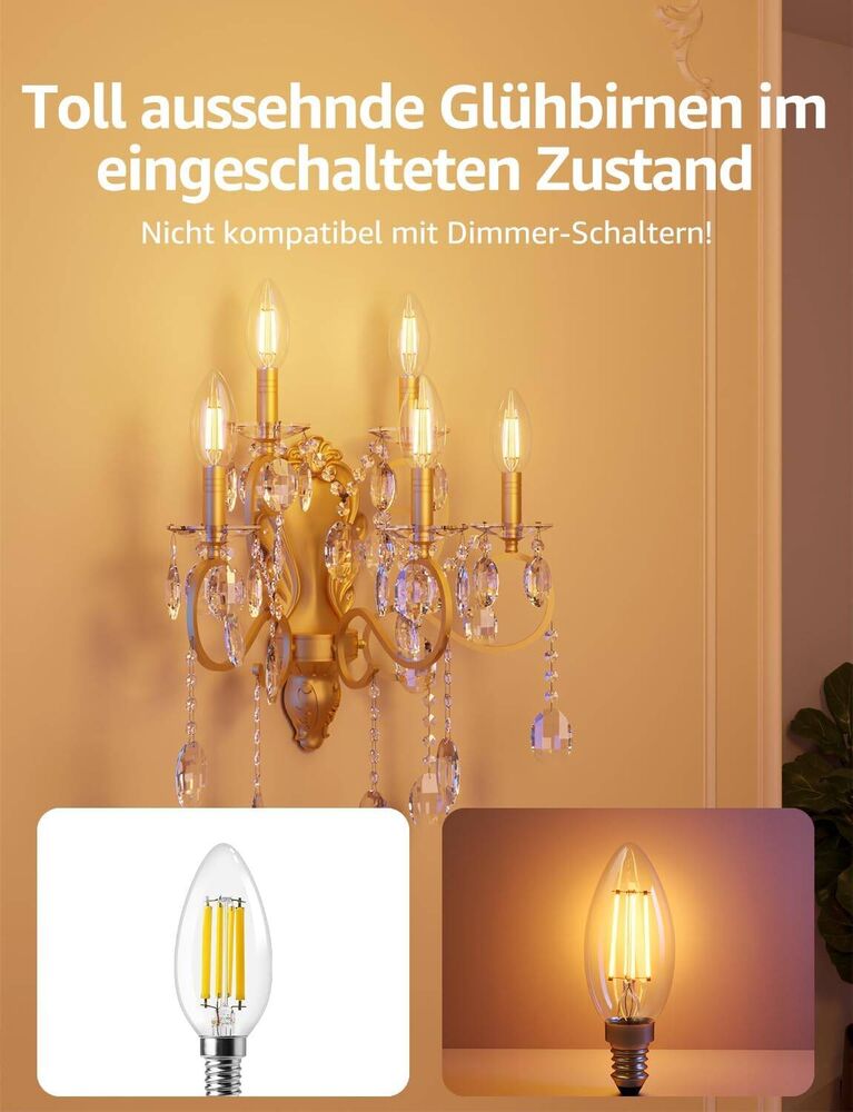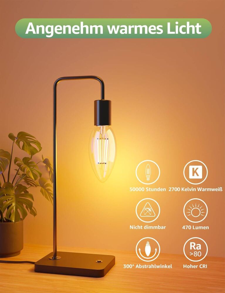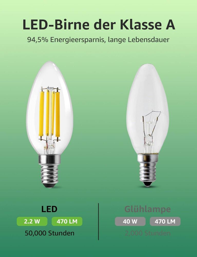 Lepro Energieklasse A E14 LED warmweiss Lampe 2.2W 470 Lumen C35 2700K Warmweiß LED Glühbirne, entspricht 40W Glühlampe, 300° Abstrahlwinkel Nicht Dimmbar Energiesparlampe, 4er-Pack