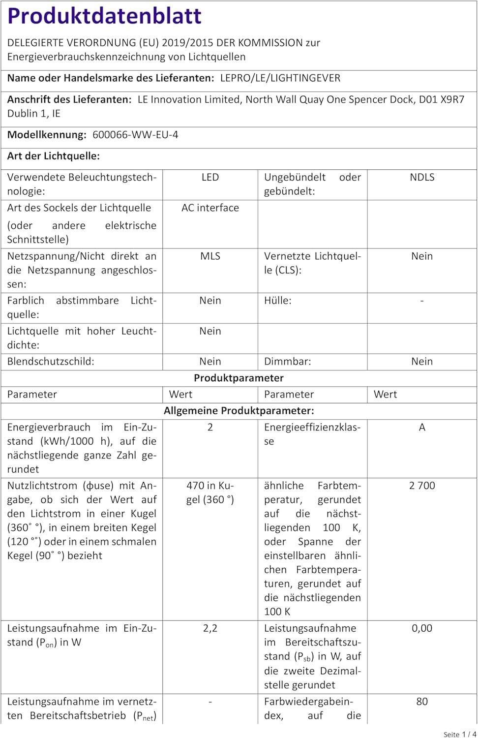 | Farbtemperatur (K) | 2700 | Dimmbar | Nicht-dimmbar |