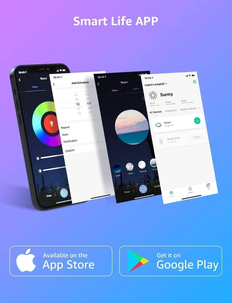 - 【Einfache Steuermöglichkeiten】 "Lepro LampUX" APP kann sich nur einen Klick mit Alexa verbinden. Der Smart LED Band kompatibel mit Amazon Alexa, Google Assistant, ohne einen Heim-Hub einzustellen.