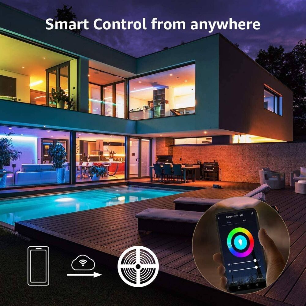 - [ Einfache Bedienung ]: Fernsteuerung über die App. Der Smart LED Streifen kompatibel mit Amazon Alexa, Google Assistant, Schalten Sie ein/aus, stellen Sie die Helligkeit ein und ändern Sie die Farbe mit Ihrer Sprachsteuerung und APP.