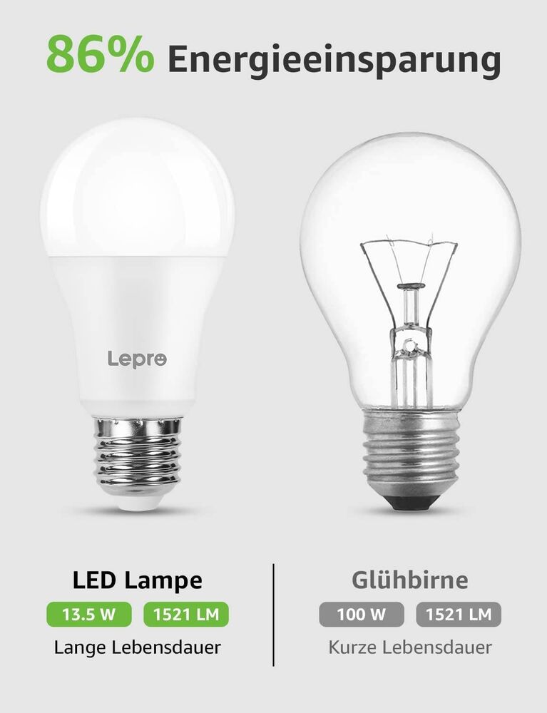 Mit einer Leistung von 13.5W ersetzt diese LED Lampe eine 100W Glühlampe, damit können über 86% an Stromkosten gespart werden.