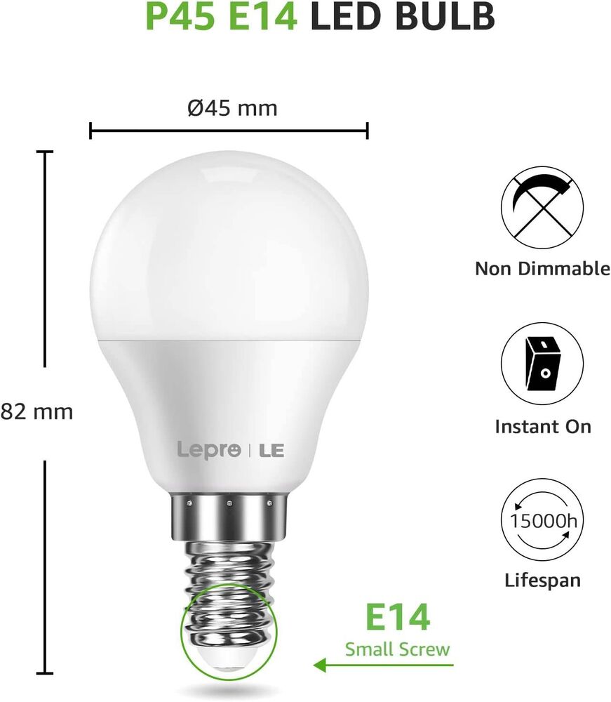Lepro E14 LED Lampe, 6er-Pack, 4.9W 470 Lumen Glühbirne,entspricht 40W Glühlampe, 2700 Kelvin Warmweiß, P45 180° Abstrahlwinkel Energiesparlampe