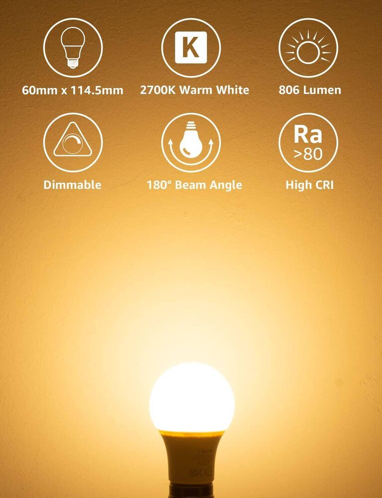 - [Helles Warmweißes Licht] Diese dimmbare Birne E27 hat eine Helligkeit von 806 lm, 180 ° Abstrahlwinkel. Sie können die Helligkeit je nach Stimmung und Atmosphäre anpassen.