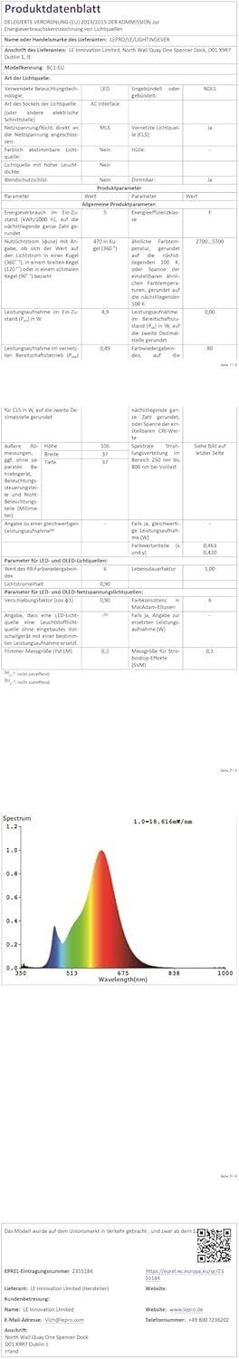 | Artikelnummer | BC1-EU | CRI | >80 |
