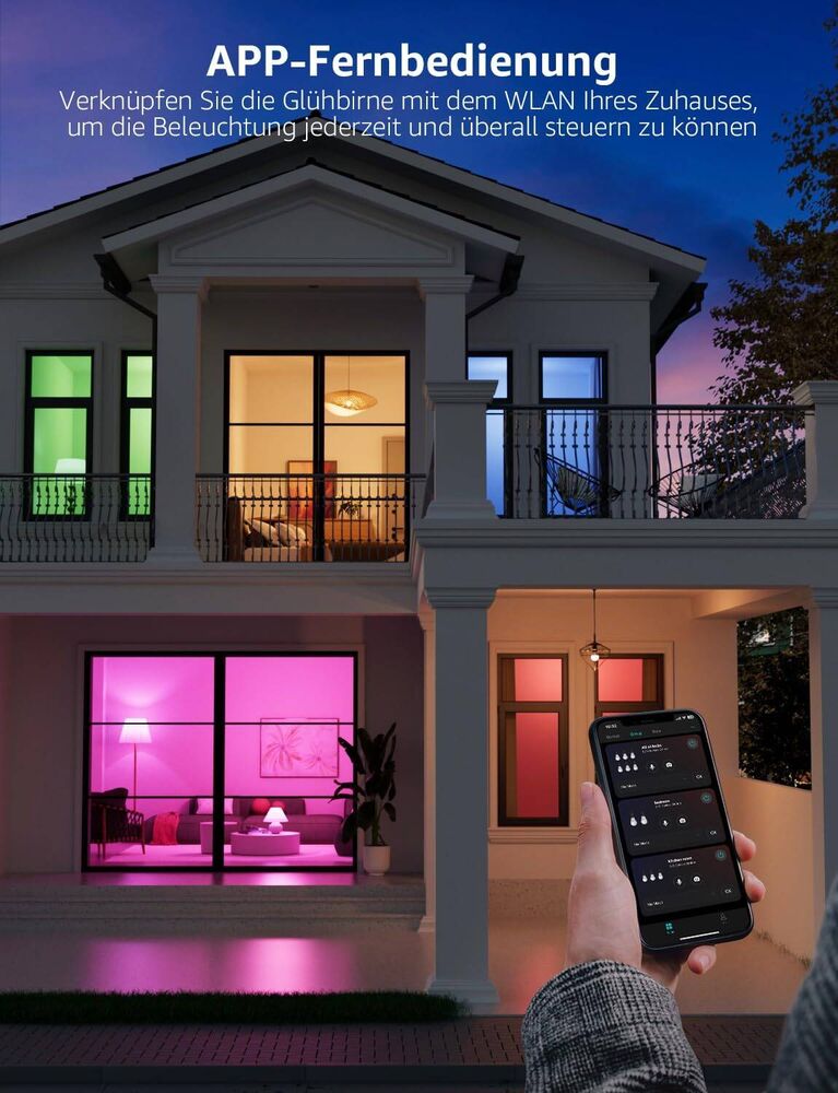- [Über 85% Energieeinsparung] - Die dimmbare Smart Lampen B1 kann eine 60W Glühlampe ersetzen und bietet 806lm Helligkeit und spart mehr als 85% Energie. Neue Version von B1, um umweltfreundliche Beleuchtung, anpassbare Atmosphäre und lang anhaltende Leistung für erhebliche Energieeinsparungen zu genießen.