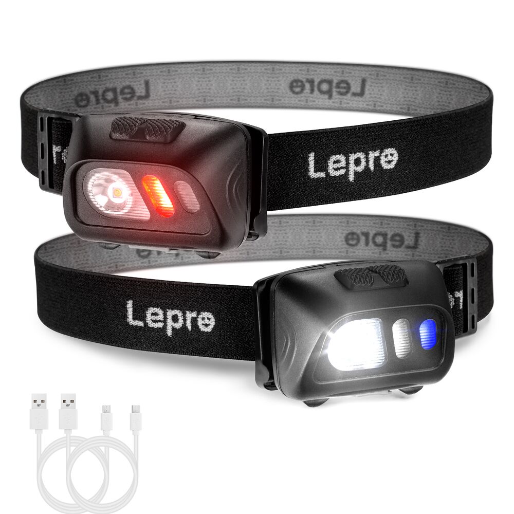 5. Lepro Stirnlampe, 1300 Lux LED XPG Kopflampe mit 6 Lichtmodi Scheinwerfer und Rotlicht, IPX4 spritzwassergeschütztes Gehäuse, Batteriebetrieben Stirnlampen, Ideal für Camping Joggen, Rot, 2 Stück