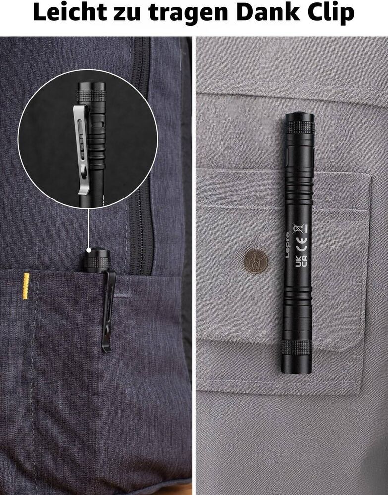 - [Tragbares und leichtes Design] - Mit nur 62 g (inklusive Batterien) und kompakter Stiftform (1,5 cm x 13,2 cm) passt diese UV-Lampe bequem in jede Tasche und lässt sich mit dem robusten Clip sicher an Gürtel oder Rucksack befestigen. Der ideale Begleiter für unterwegs und den Alltag!