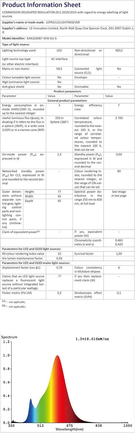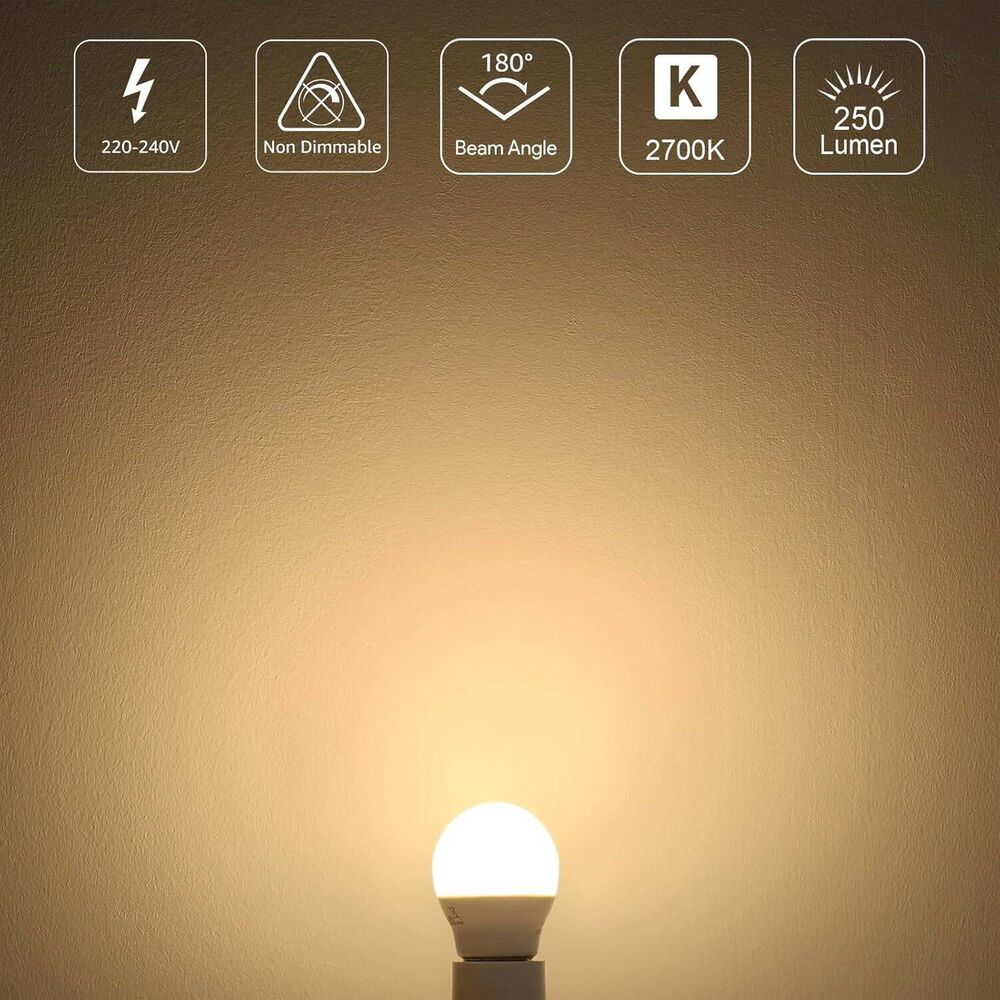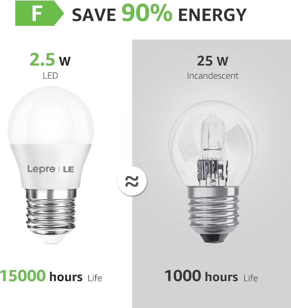 Lepro E27 LED Warmweiss Glühbirne, 2.5 Watt G45 LED Lampe E27, ersetzt 25W Halogenlampe, 250 Lumen Leuchtmittel, 2700 Kelvin Warmweiß, 180° Abstrahlwinkel Energiesparlampe, 5 Stück