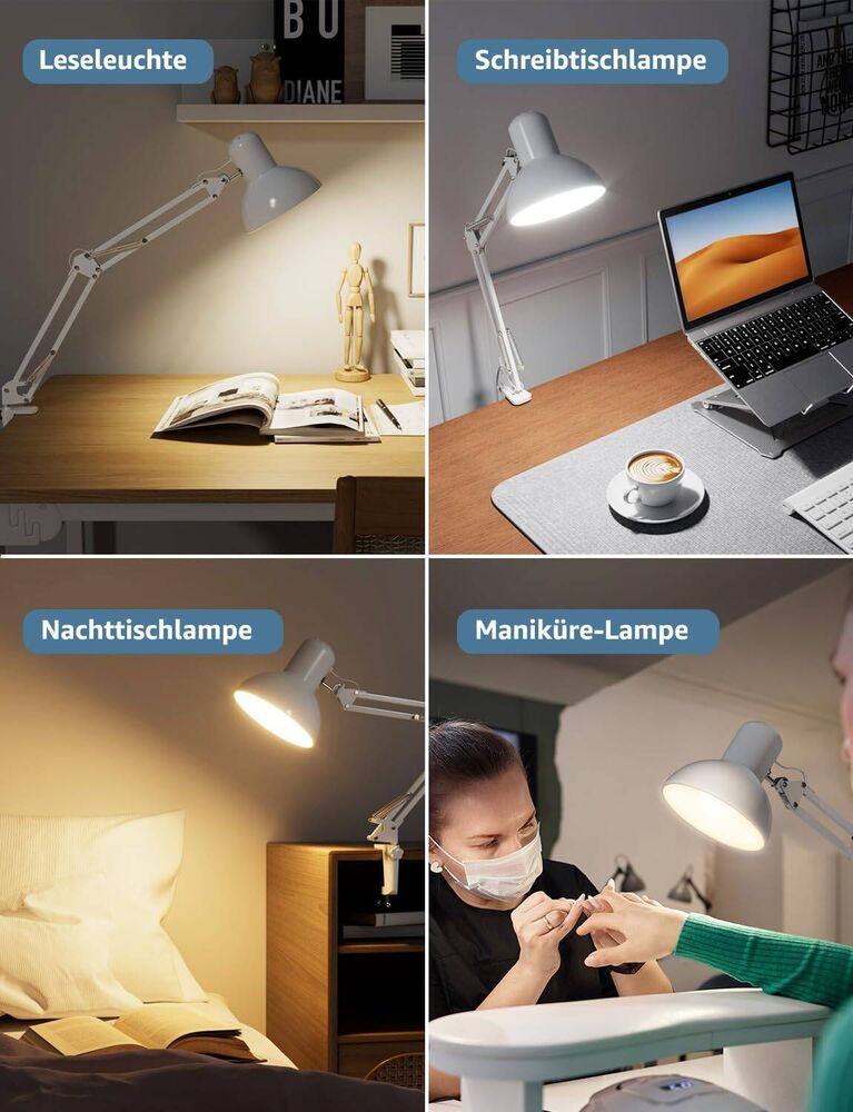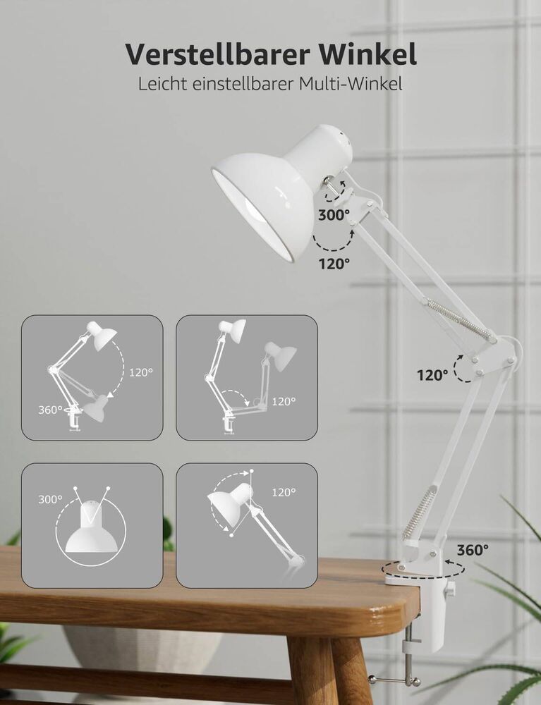 - [Mobil und bequem]: Mit einer C-Klammer kann die Tischlampe an jedem fixierbaren Objekt befestigt werden.