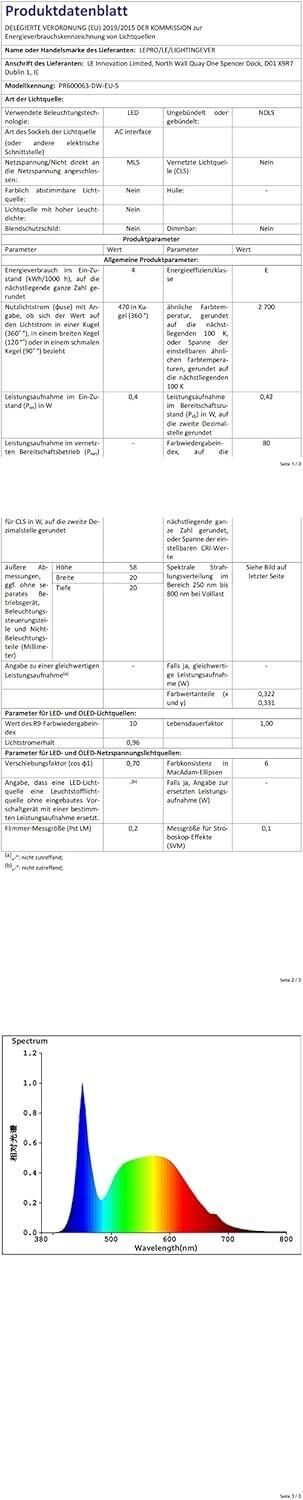 | Frequenz (Hz) | 50 | Helligkeit (lm) | 470 |