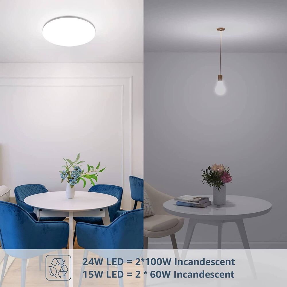 - ENERGIE SPAREN: Sparen Sie 85% auf Ihrer Stromrechnung, indem Sie zwei Ihrer 100W Glühbirnen durch unsere flache 24W Deckenleuchte ersetzen.