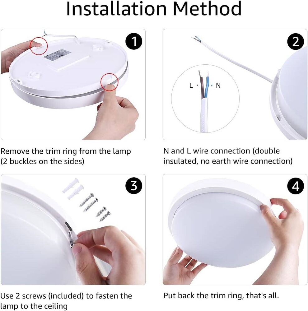 - Wasserdichten & Breite Anwendung: Mit dem Wasserdichten Index IP54 Zertifikat ist, fachgerecht installiert, eine bedenkenlose Nutzung im Badezimmer möglich. Es kann drinnen oder draußen verwendet werden, beispielsweise im Badezimmer, WC, Küche, Garderobe, Nasszelle, Hauswirtschaftsraum, Garage, Keller, Flur, Wohnzimmer, Terrasse, Balkon und so weiter.