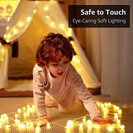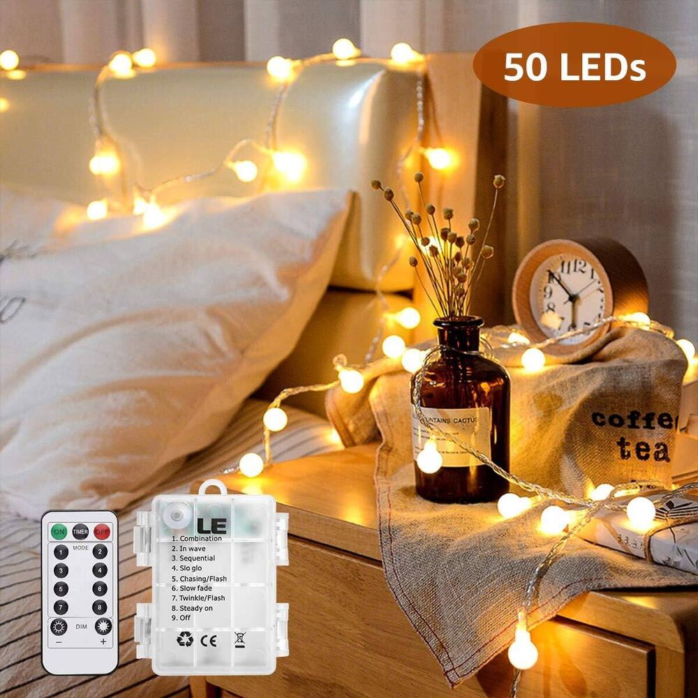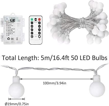 LE 50er LED Kugel Lichterkette 5M Warmweiss Dimmbar, Batteriebetrieben mit Fernbedienung, 8 Lichtmodi, Zeitschaltuhr und Merkfunktion, ideale für Innen, Hochzeit, Party Deko usw.mmer, Party Deko usw.