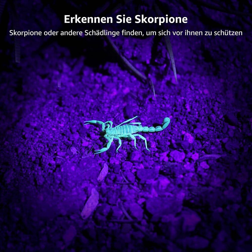 - Praktische Anwendung - Mit der UV-Taschenlampe können Sie nicht nur eine gefälschte Banknote, einen Führerschein überprüfen oder Sicherheitskennzeichnungen auf verschiedenen hochwertigen Gegenständen machen, sondern auch prüfen, ob Skorpione und Bettwanzen vorhanden sind.