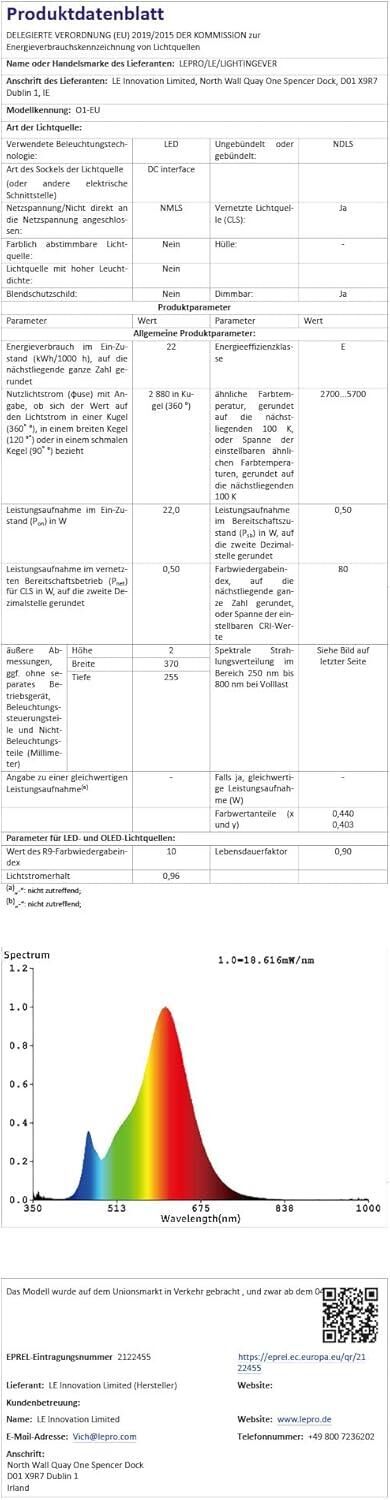 | Dimmbar | Dimmbar | Durchmesser (MM) | 388 |