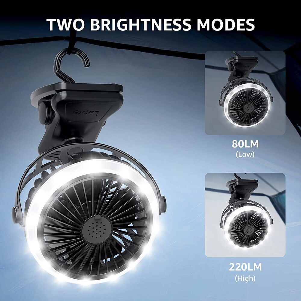 Lepro Camping Ventilator mit Licht, Campinglaterne mit Ventilator, Tragbar USB Ventilator, Zeltventilator mit Aufhängehaken, Wiederaufladbar USB-Ladeeingangslüfter für Outdoor, Camping, Büro, Grill