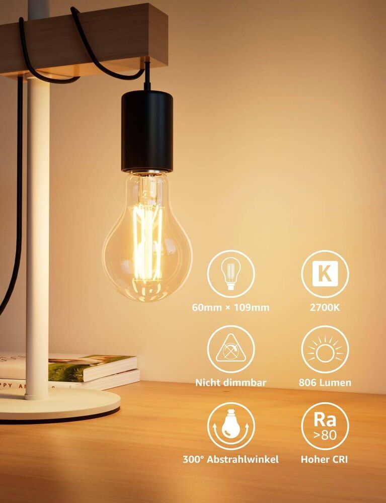 - Hohe Lichtqualität: Gibt 806LM warmes Licht für ein gemütliches und einladendes Ambiente aus, CRI> 80 für lebendigeres und natürlicheres Licht.