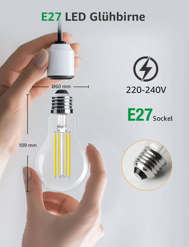- Einfache Montage: Um die herkömmliche Glühbirne zu ersetzen, wird diese LED direkt in den E27-Sockel gedreht.