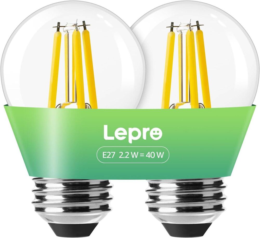 Lepro Energieklasse A E27 LED Warmweiss, 2.2W 470 Lumen Glühbirne E27, Nicht Dimmbar, G45 Led Birne, 2700 Kelvin Warmweiß, 300° Abstrahlwinkel Energiesparlampe, ersetzt 40W Leuchtmittel, 2 Stück