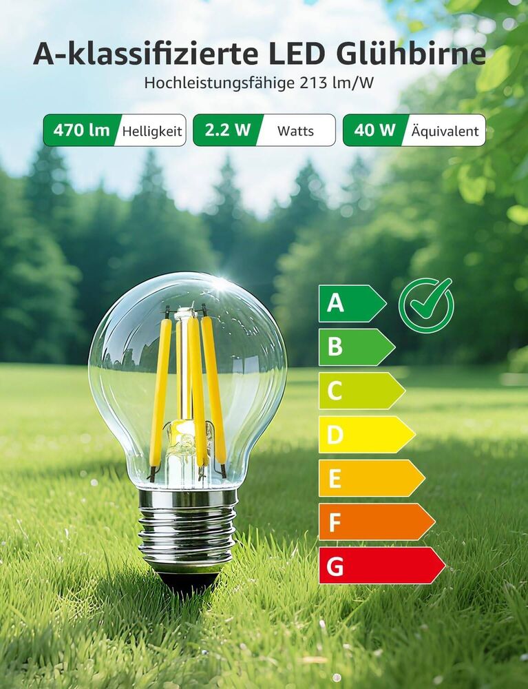 - Energieeffizienzklasse A: Lepro 2.2W E27 Led LED Glühbirne Entspricht den europäischen Energieeffizienzstandards der Klasse A, Ersetzt 40W Leuchtmittel.