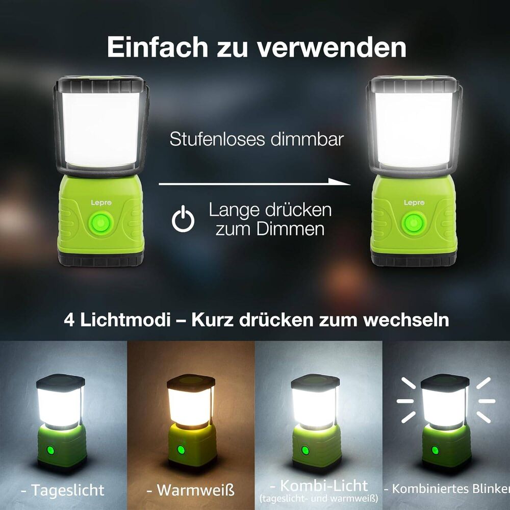 Lepro 1300 lm LED Campinglampe wiederaufladbar, 4 Leuchtmodi 3600 mAh Powerbank IPX4 wasserdicht, Camping Laterne für Hurrikan-Notfälle, Wandern, Zuhause und mehr, USB-Kabel im Lieferumfang enthalten