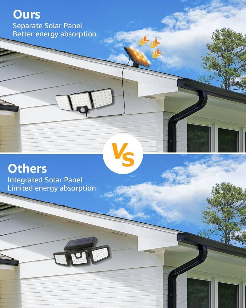 1 Licht - 2 Installationsarten: Mit 2 in 1 Designs, können sie die Lepro solarlampe als kompakte Lampe oder getrennt, je nach ihren bedürfnissen verwenden. Das Solarmodul kann mit dem mitgelieferten 3 Meter langen 12V-Anschlußkabel separat installiert werden, was sicherstellt, dass die absorptionseffizienz der sonnenenergie nicht durch Verschattungen beeinträchtigt wird.